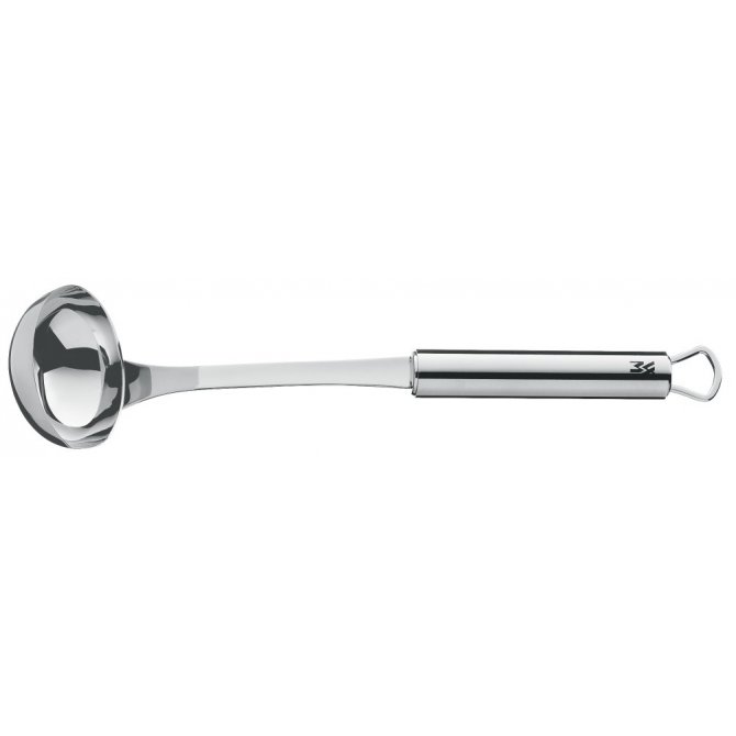 Der Saucenlöffel ist das ideale Besteck für flüssige Speisen. Im Vergleich zum Suppenschöpfer ist die Stiellänge fast identisch, das Schöpfelement fällt jedoch leichter und kleiner aus. Der WMF Saucenlöffel, der in verschiedenen WMF Designs erhältlich ist, portioniert und serviert warme Bratensaucen oder kalte Dressings. Praktisch ist seine beidseitige Schnaupe – so eignet er sich gleichermaßen für Links- und Rechtshänder. Der Saucenlöffel ist ein vielseitiger Helfer, der Ihr Besteck sinnvoll ergänzt.