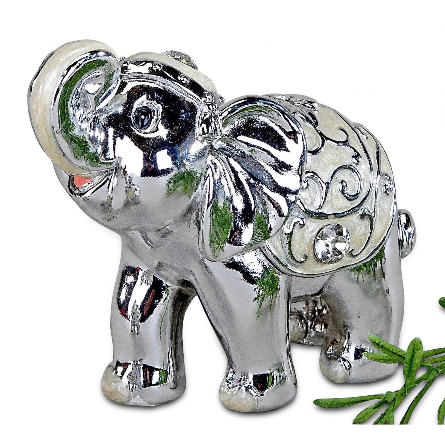 Elefant, weiß-silber, Kunstmasse