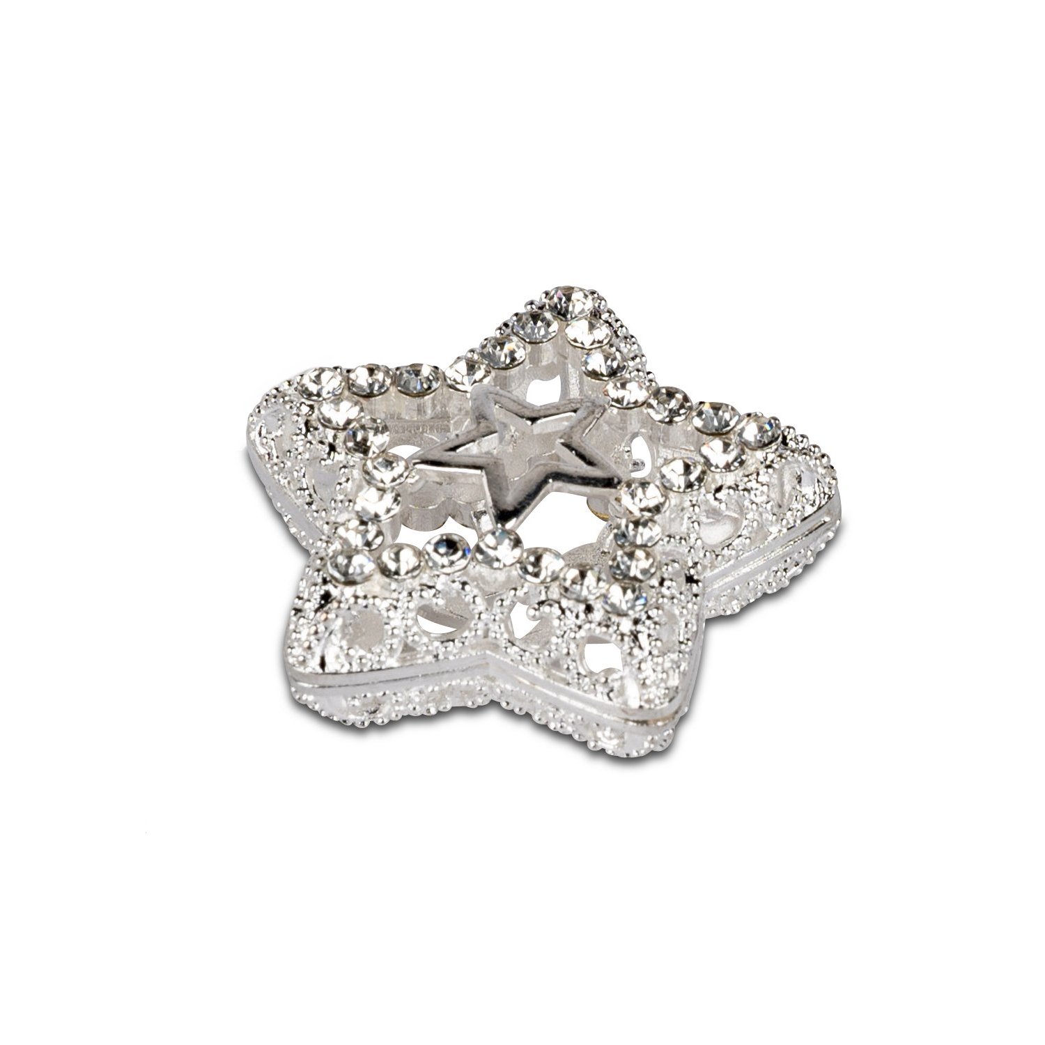 Dekostern aus Metall, silber mit kleinen Glassteinchen, 4cm