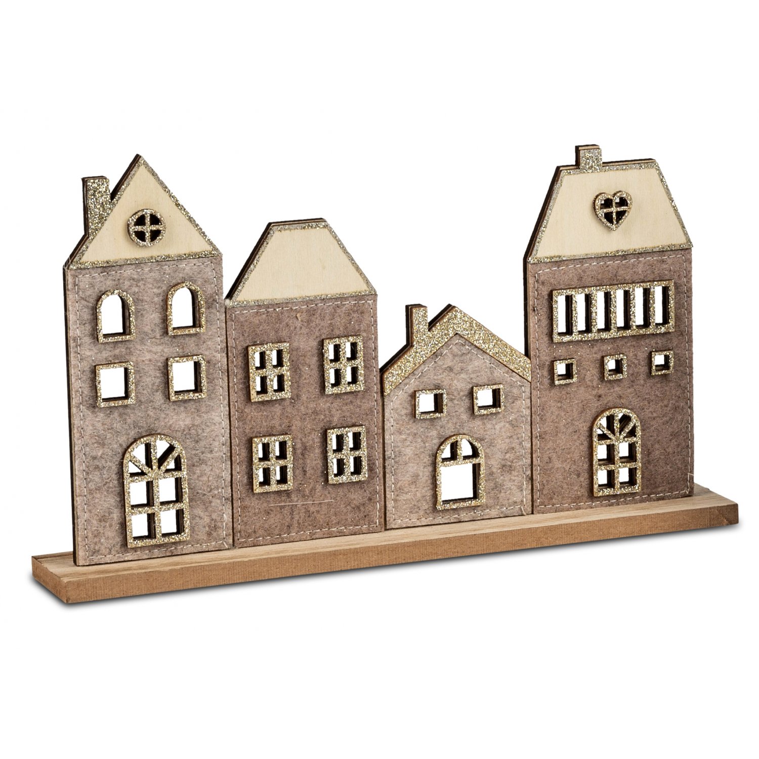 Häuserreihe aus Filz auf Holz, 26cm